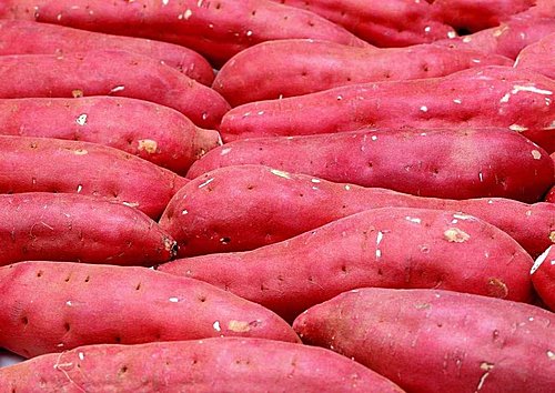 旋花科草本植物番薯的塊根。又稱紅署、金薯、土瓜、地瓜、紅苕、白薯、甘薯、山芋等。冬季采取,洗凈,除去須根鮮用,或切片、曬乾備用。